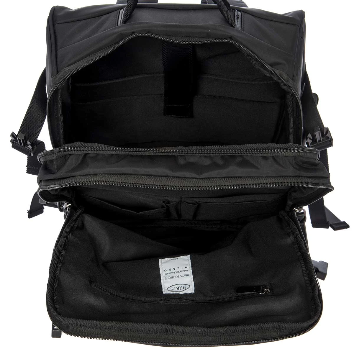 - Divided Interior with Organizational Pockets, 2 external buckles on each side to adjust bag depth