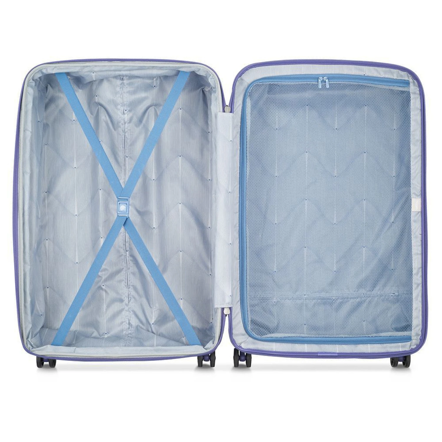The main compartment is expandable for maximum packing flexibility. This feature is great when packing souvenirs on return journeys ! The interior includes two full packing compartments with a mesh divider and elastic tie-down straps to secure your belongings.