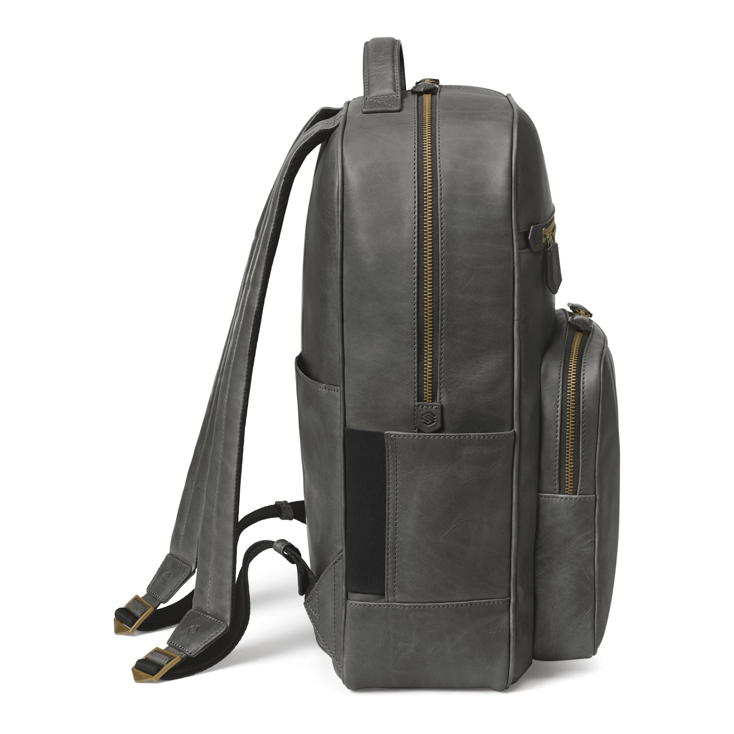 - YKK metal zippers with leather pulls.
