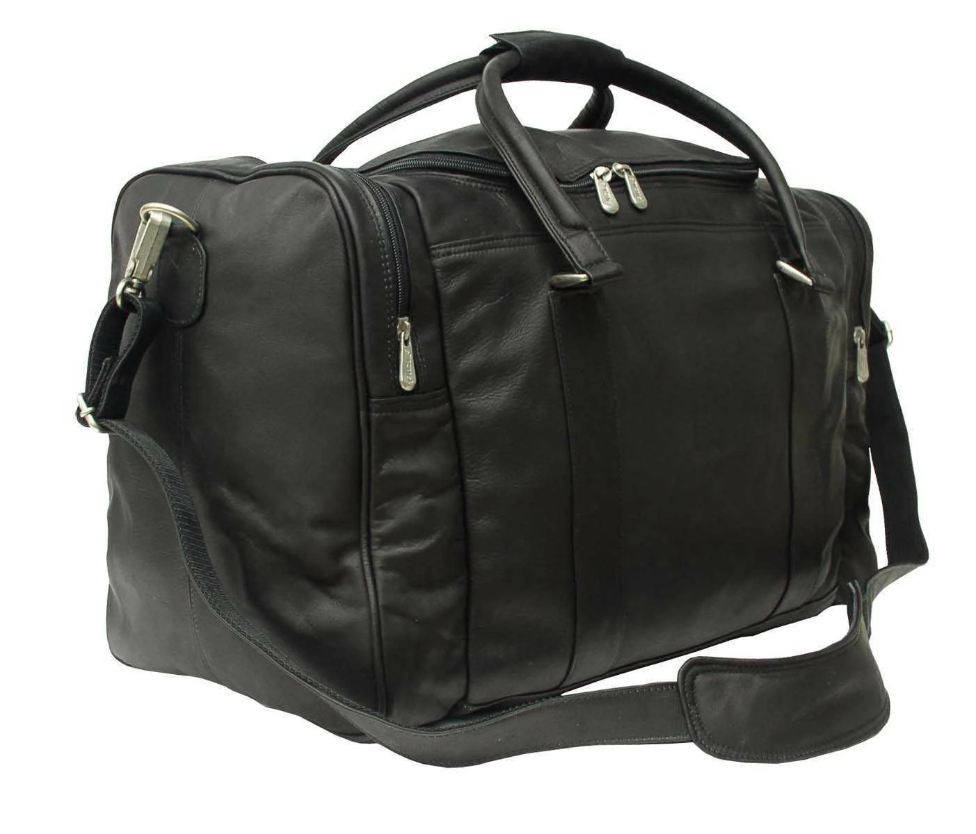 - Two exterior end zippered pockets