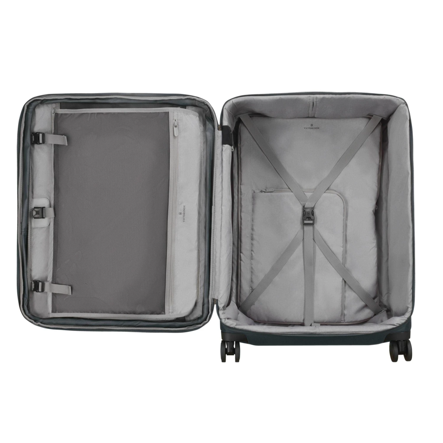 - Wheel-hubcaps are color matching to the color of the bag and show the Victorinox Cross & Shield logo